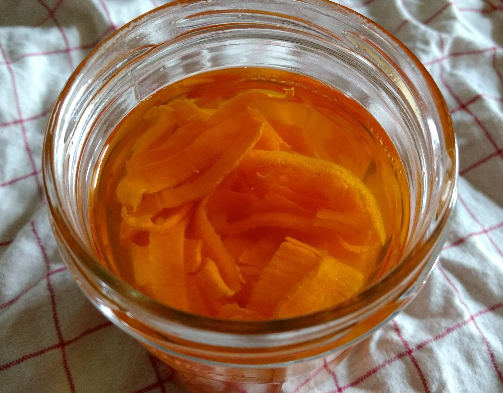 Une fois sèches, on met les épluchures dans un pot en verre stérilisé et on recouvre d’huile de tournesol + fermez le couvercle et c’est parti pour l’attente ! Mettez votre pot à l’abri de la lumière pendant 4 à 6 semaines.