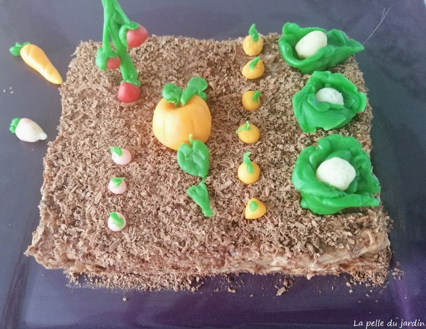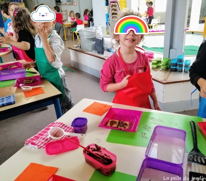 Convivial, pédagogique et ludique, je vous propose de réaliser un gâteau au chocolat sans cuisson (donc pas besoin de cuisine mais juste un point d’eau). Ce gâteau sera la base de notre potager gourmand afin d’y apposer des légumes en pâte à sucre.