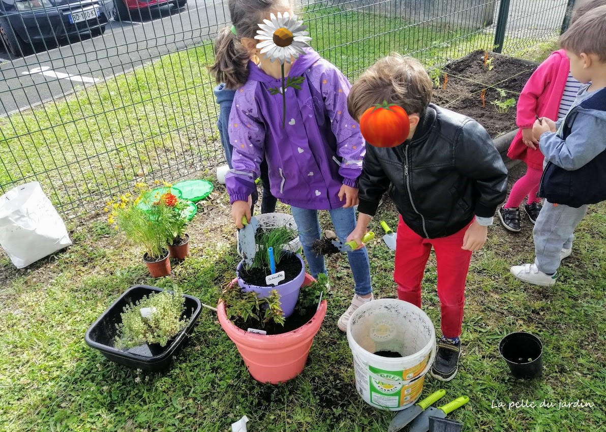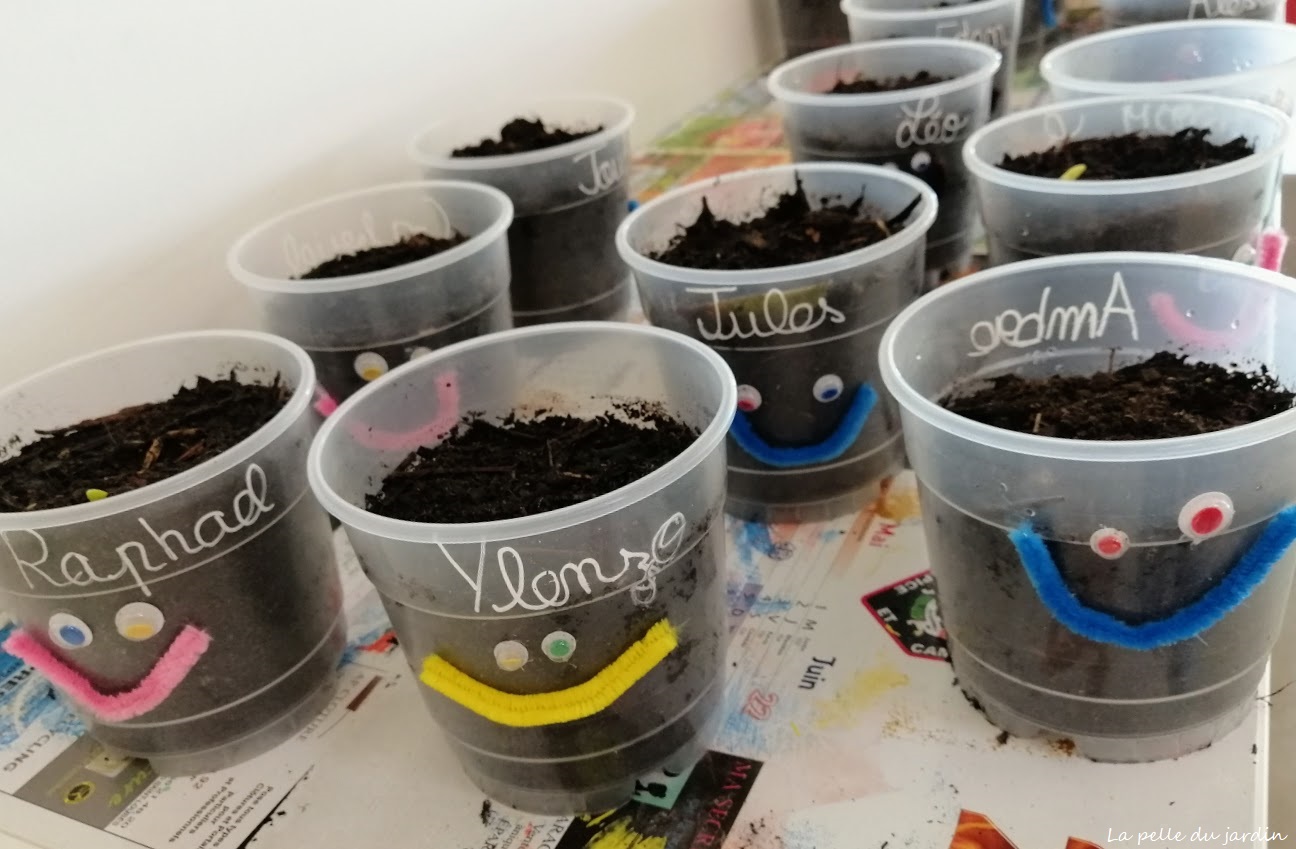 Mais dans l’organisation d’une demi-journée pédagogique, il nous semble primordial d’apprendre en expérimentant, nous avons donc mis en place après les jeux de découverte du potager des ateliers de semis ou chaque enfant réalisera son petit pot de semi pouvant par la suite être ramené à la maison ou en classe et être ensuite repiqué en pleine terre.