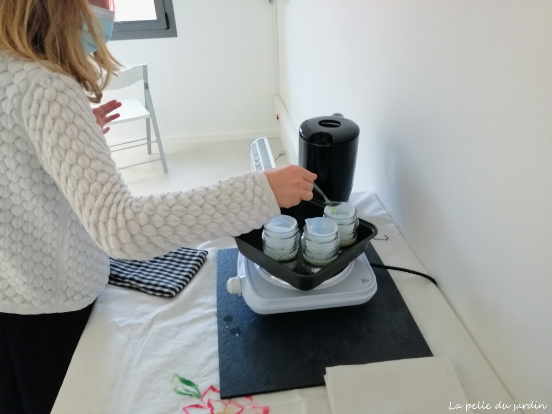 Nous nous sommes réunis avec tout le nécessaire : flacons, petites cuillères, ingrédients… sans oublier une petite tasse d’infusion {comme à la maison} pour faire plus ample connaissance.