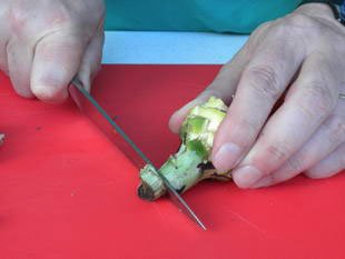 ♦ Coupez la base du pied, la base seulement.