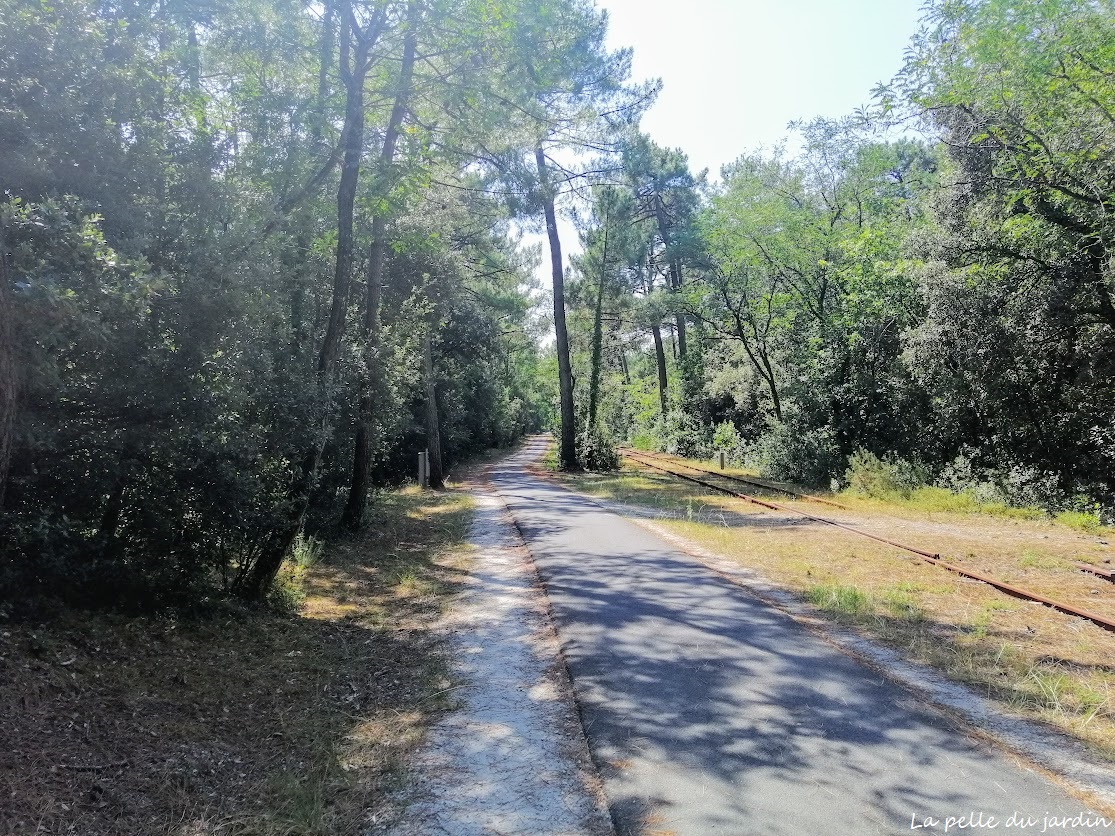 La piste cyclable jouxte la voie ferrée du petit train ( Soulac, Pointe de Grave, Le Verdon) . Initialement cette voie ferrée permettait de transporter dans les année 30 des pierres pour la construction de “brise-lames” et formant des piscines, qui aujourd’hui fond le bonheur des petits et grands baigneurs.
