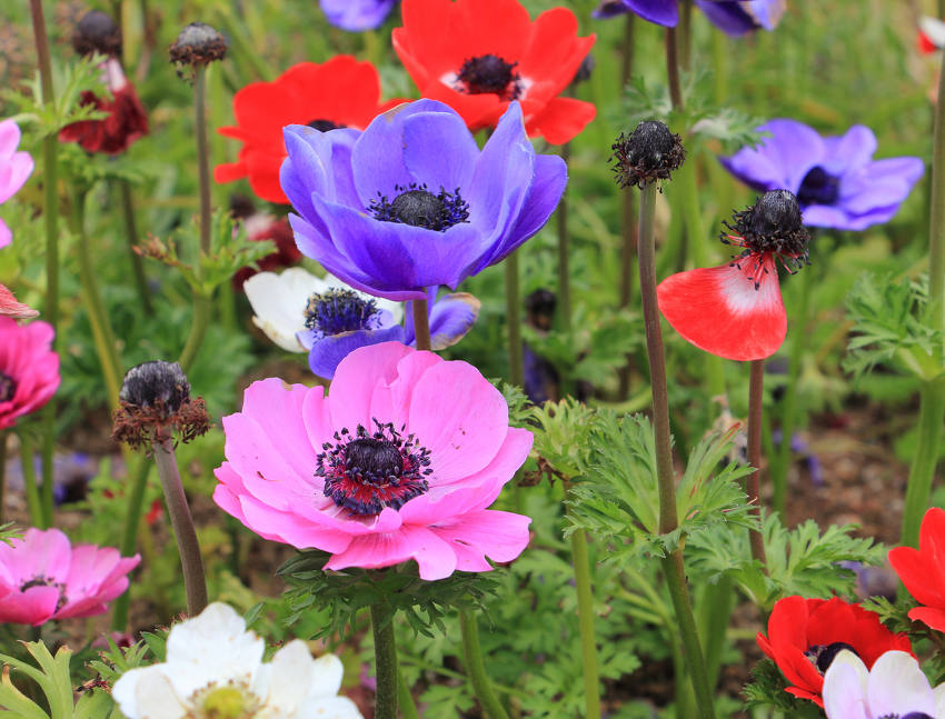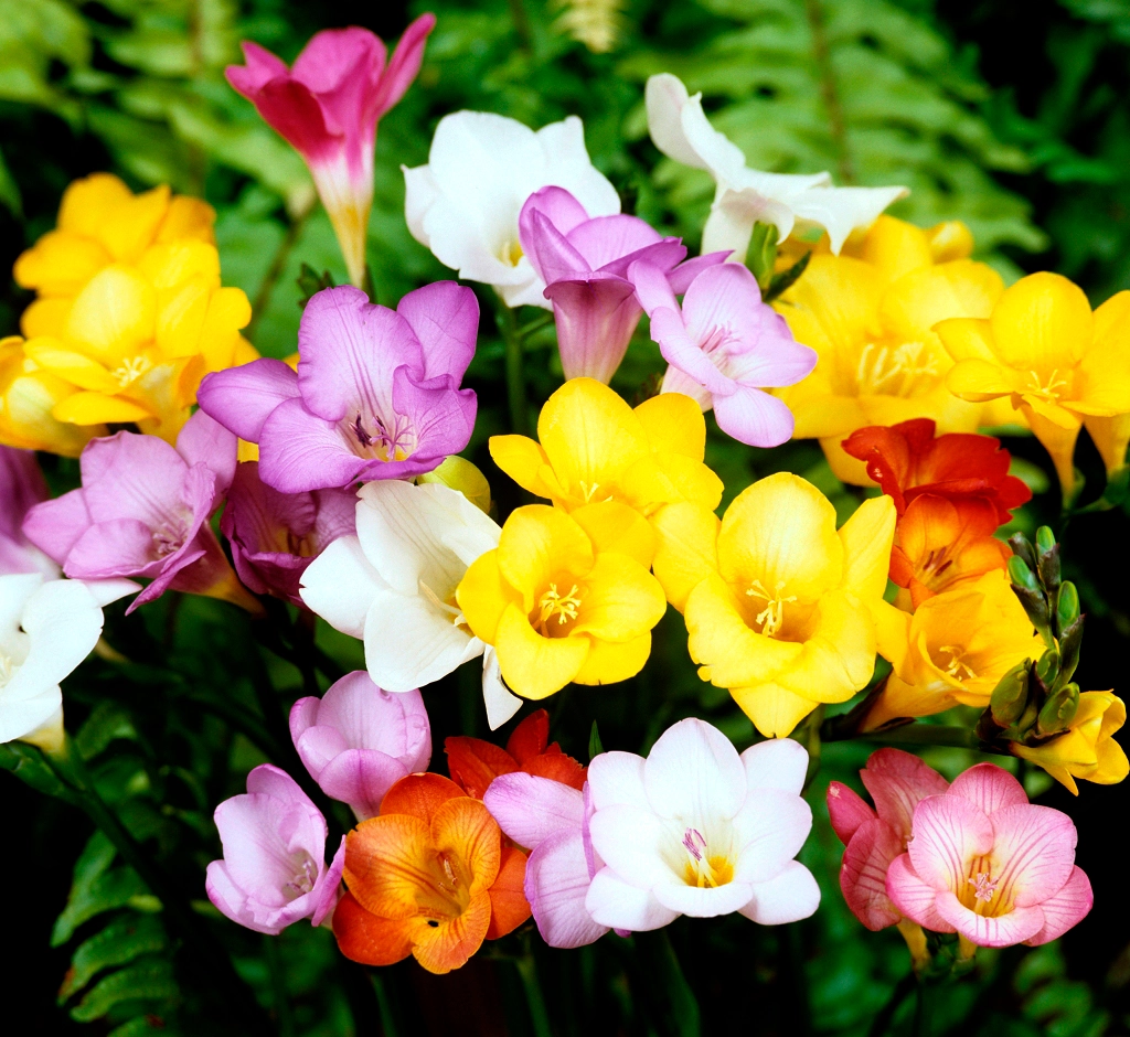 Regardez les images des belles fleurs que vont donner les bulbes : des freesia, des anémones