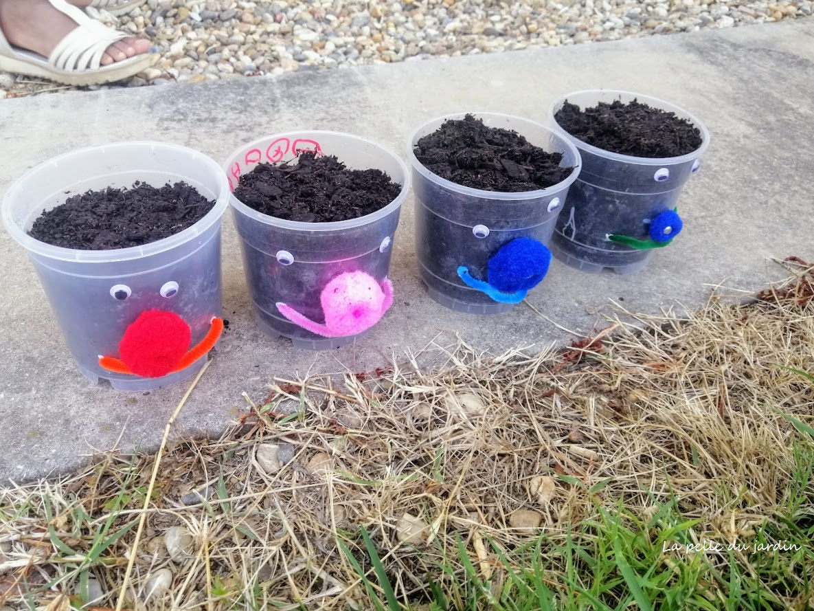 Pour rendre l’activité plus ludique tout en étant pédagogique, nous avons planté les bulbes dans des pots transparents, des pots qui pour l’occasion vont prendre l’allure de bonhommes tous plus rigolos les uns que les autres avec des nez de différentes couleurs, des yeux mobiles et des bouches qui font la grimasse. Nos drôles de bonhommes s’appellent ‘Bob’ !…