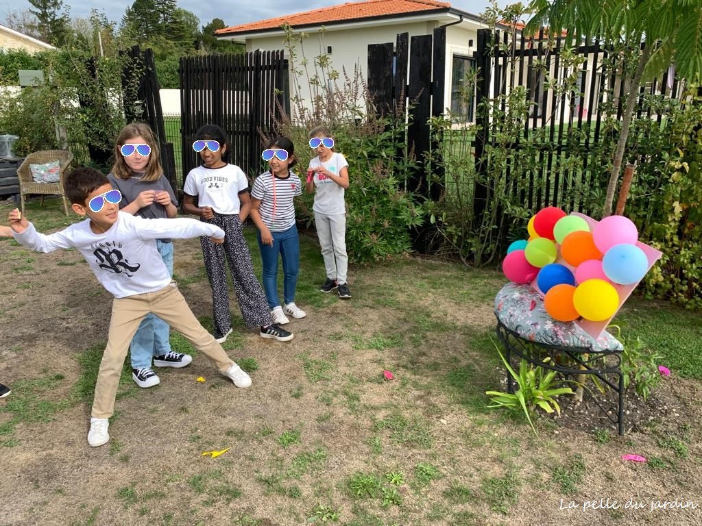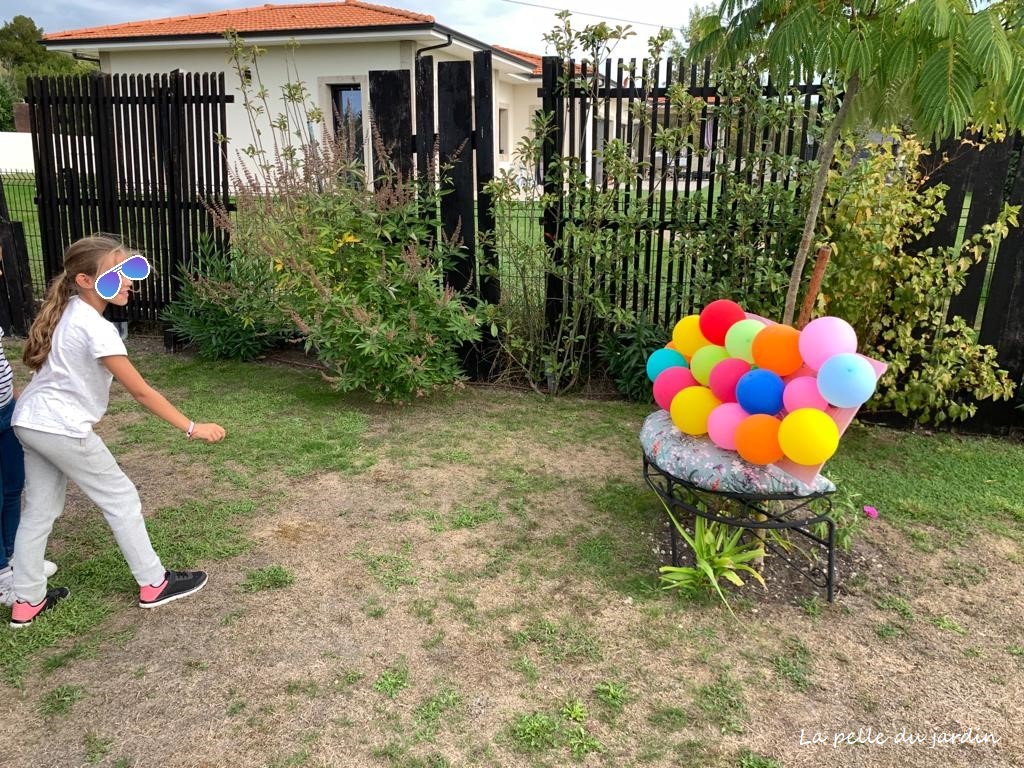 Après une escapade effrénée dans le potager, les festivités de l’anniversaire continuent avec un jeu de fléchettes pour libérer des bonbons prisonniers dans des ballons…