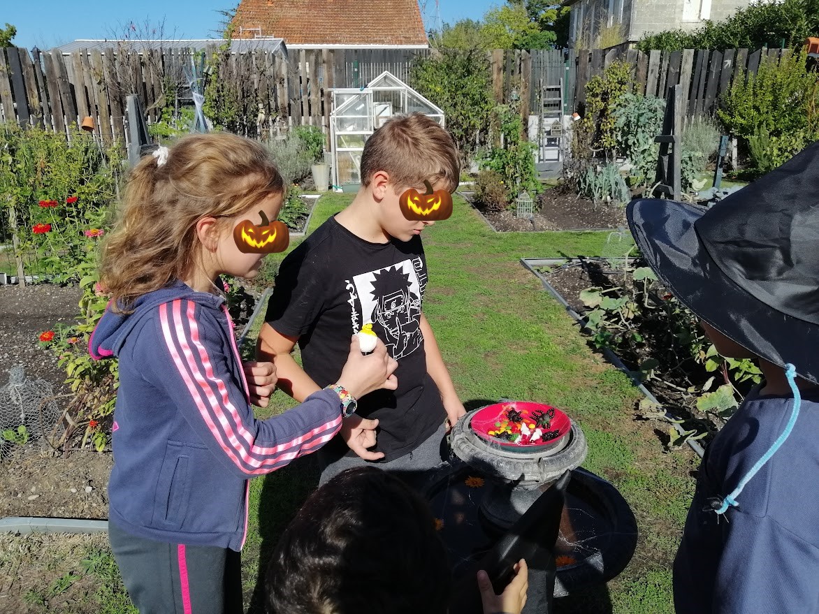 En cette période de fête d’Halloween, le potager pédagogique a accueilli pléthore d’apprentis qui souhaitaient apprendre la recette de la potion magique de la sorcière-jardinière du potager pédagogique “La pelle du jardin” HA…HA…HALLOWEEN !