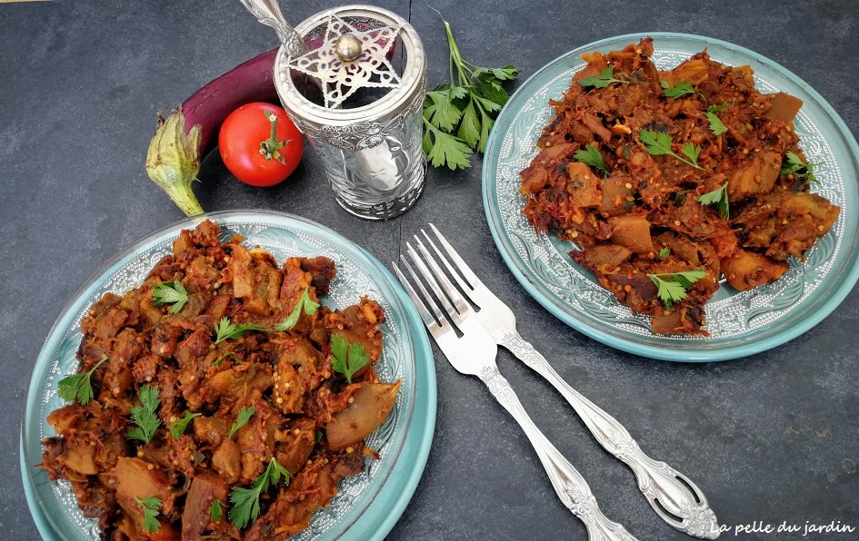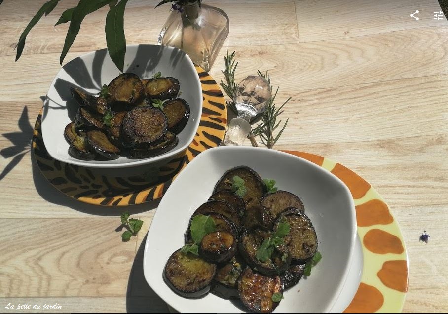 Un zaalouk d’aubergines ou encore aubergines grillées à la romaine et même des pâtes aux aubergines du potager.