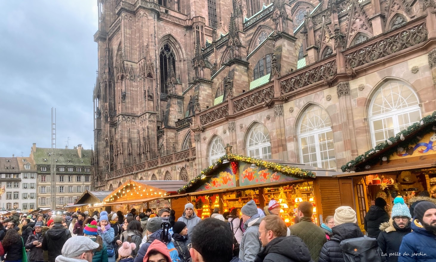 Nous sommes arrivés sur la ville de jour, en fin de matinée vers 11h, à l’heure de l’ouverture des stands. Nous avons pu ainsi nous balader et découvrir l’architecture de la ville comme la cathédrale ou encore les belles maisons à colombages qui bordent de canal dans le quartier de la petite France.