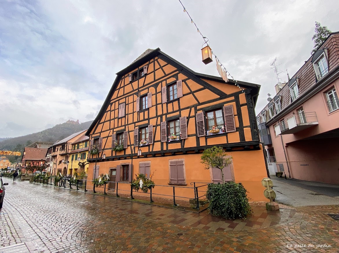 Mais même sans les marchés de Noël, mon conseil pour visiter Ribeauvillé est relativement simple: baladez-vous! Flânez dans la Grand Rue et prenez régulièrement les petites ruelles perpendiculaires à la Grand Rue pour un véritable plaisir tant il y a de jolies choses à observer dans le centre historique: maisons alsaciennes à colombages colorées et fleuries, jolies boutiques, belles enseignes, sculptures à l’angle des maisons… Ribeauvillé est un village médiéval vraiment ravissant. Il faut bien lever les yeux pour guetter les détails sur les façades, il y en a de très nombreux à admirer!