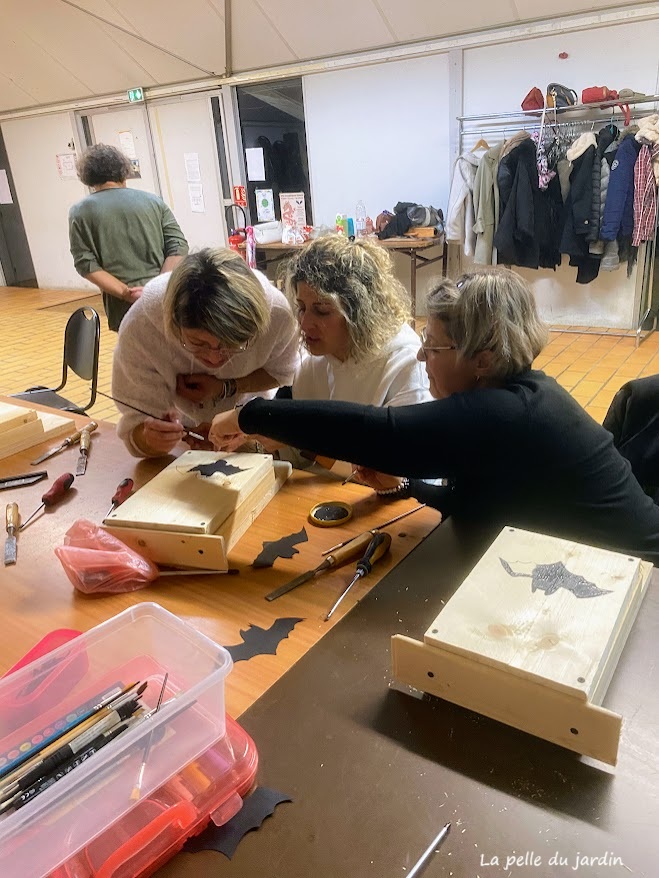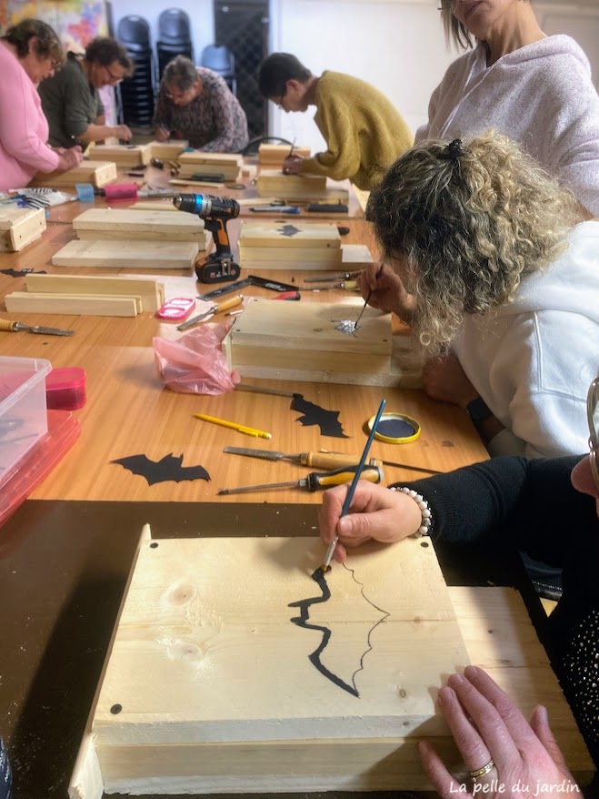 Et si vous aussi, vous souhaitez organiser un atelier de construction de nichoir à chauve-souris ( clé en main, aucun souci d’organisation, j’apporte tout le matériel), n’hésitez pas à me contacter par mail contactlapelledujardin.com.