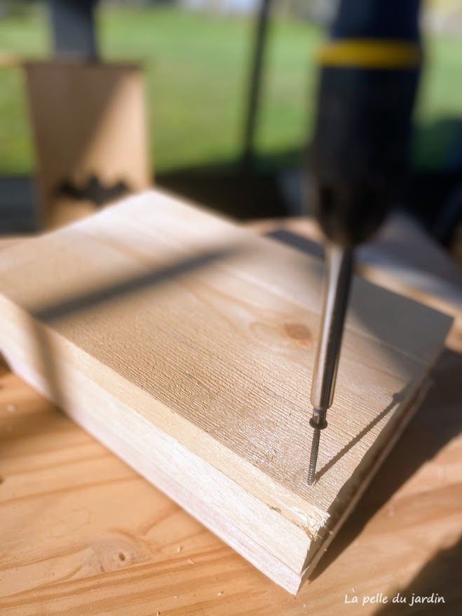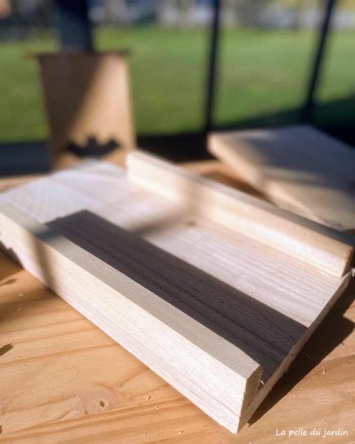Commencez par prendre soin d’aménager quelques rainures de quelques millimètres sur la planche de 40cm pour permettre aux chauves souris de s’accrocher.
