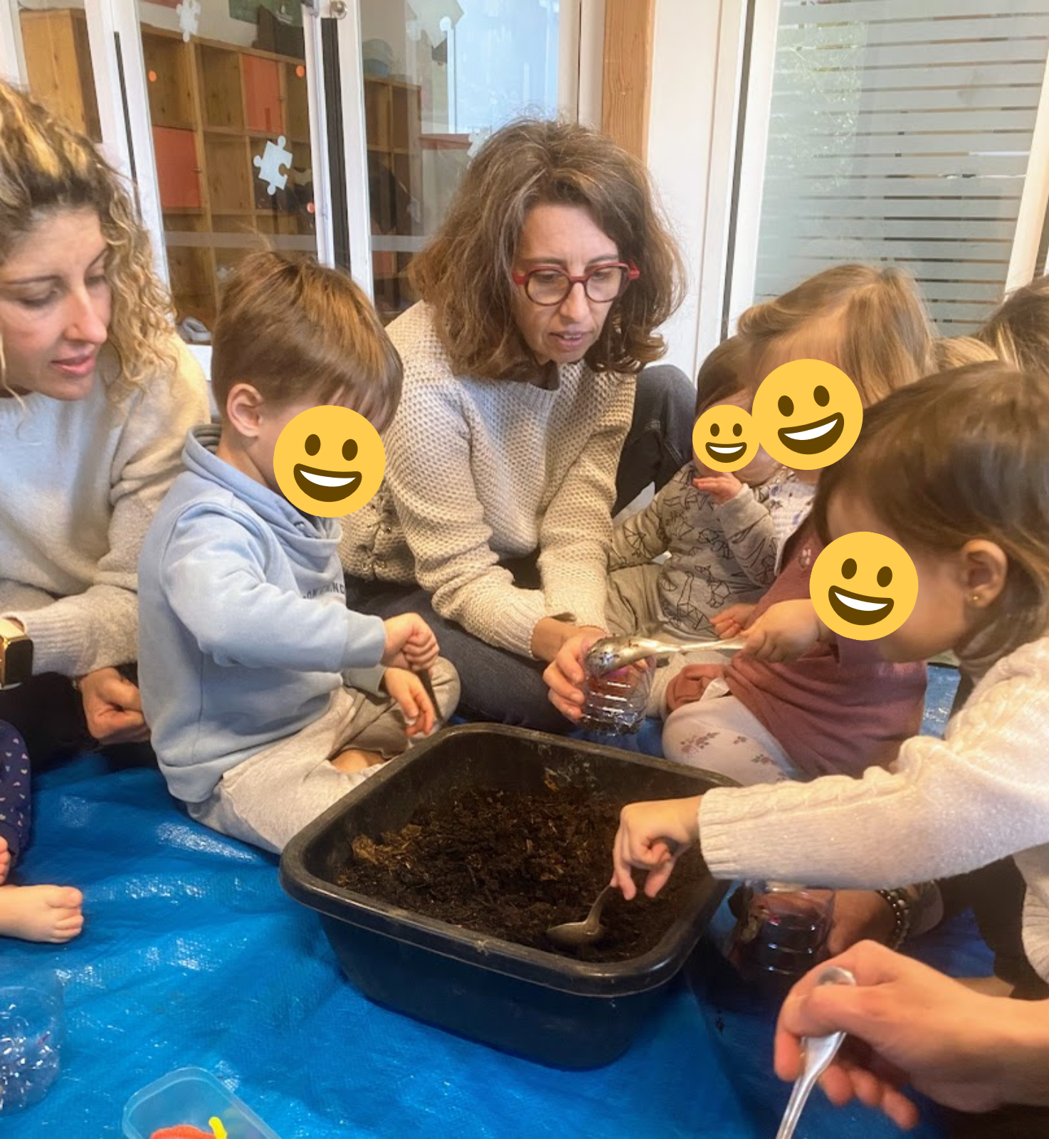 C’est certainement l’un des ateliers que j’aime le plus animer avec celui des mangeoires pour les “petits oiseaux du ciel“. Complétement adapté aux enfants de moins de 3 ans, il permet à la fois fois de mettre les mains dans la terre, de toucher la matière, de faire du remplissage, du transvasement… Mais aussi d’appréhender le visage avec la création d’un pot rigolo auquel on va y mettre un nez, une bouche, des yeux.