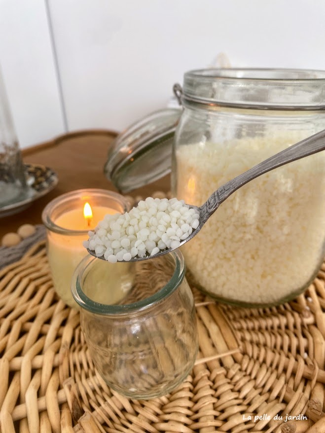 Je vous invite à opter pour des cires de haute qualité comme la cire de soja ( mélange de cire d’abeille et d’huile de soja). Personnellement je l’adore parce qu’elle a un point de fusion très bas donc peu de risque de se brûler .