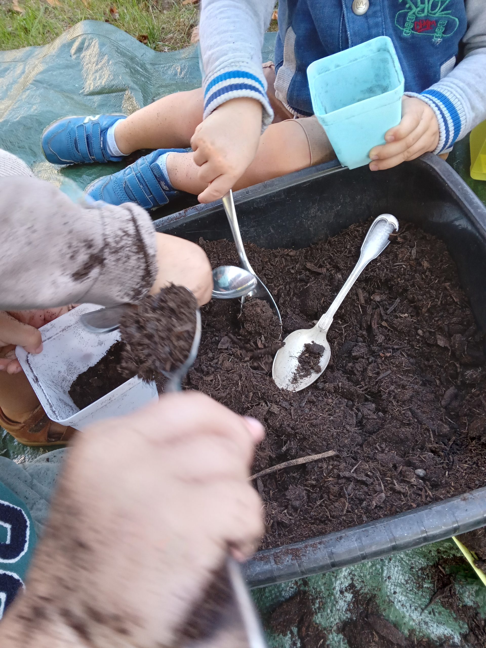 Un atelier sans transvasement n’est pas un atelier. Donc la mission importante est de transvaser de la terre dans plein de godets.